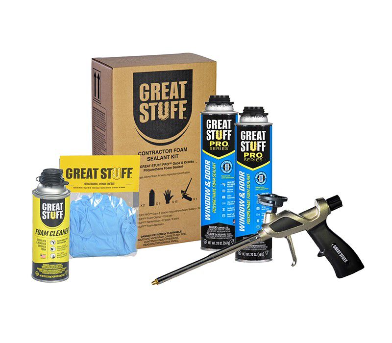 The convenience of the Great Stuff™ Window & Door Foam Sealant Kit is that it has everything you need to reduce unwanted airflow and improve energy efficiency in one easy to manage kit. GREAT STUFF PRO™ Window & Door Polyurethane Foam Sealant is a specially formulated, minimal-expanding foam with a low pressure-build that remains soft & flexible after curing.